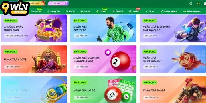 Không chỉ dừng lại ở cá cược thể thao, nhà cái 9WIN còn chú trọng phát triển kho trò chơi sòng bạc đa dạng, với nhiều chủ đề và thể loại game hấp dẫn, mang đến trải nghiệm phong phú cho mọi đối tượng, đảm bảo người chơi nhận được sự hỗ trợ nhanh chóng và chính xác trong mọi tình huống.